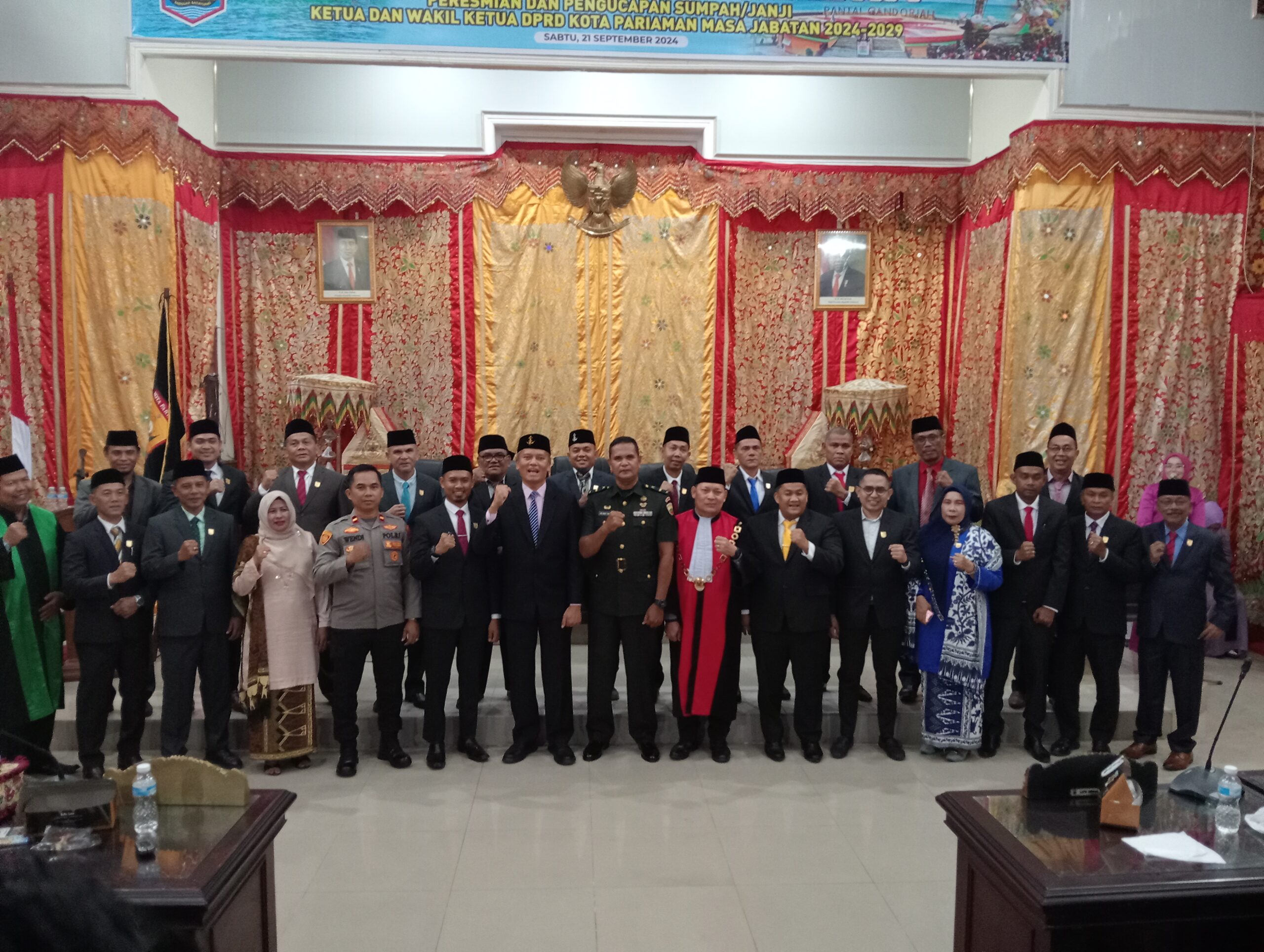 Pelantikan pimpinan DPRD ini dihadiri langsung oleh Penjabat (Pj) Walikota Pariaman, Roberia, segenap unsur Forkopimda dan seluruh anggota DPRD.