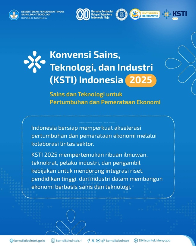 Melalui KSTI 2025, Kemdiktisaintek berharap dapat memperkuat sinergi antara kebijakan pendidikan tinggi, riset, dan pengembangan industri, mendorong lahirnya generasi SDM unggul dan memperkuat daya saing ekonomi nasional di tingkat global. (*/rls)