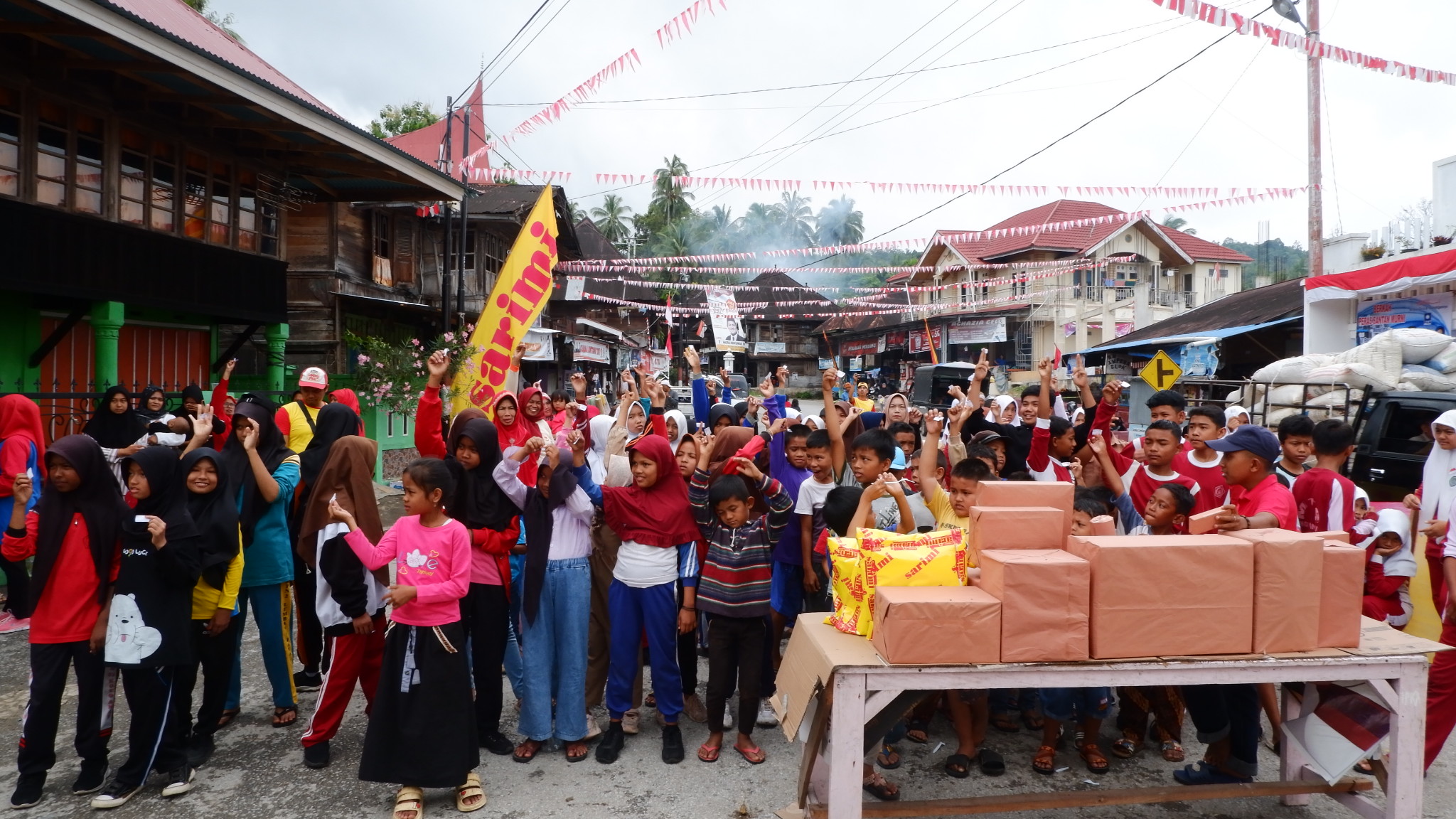 Walaupun pada pagi hari diguyur hujan masyarakat tetap antusias mengikuti kegiatan dengan tertib dan pelaksanaannya berjalan dengan lancar.