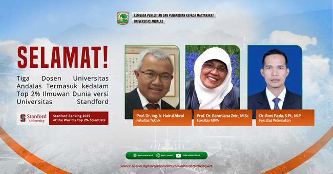 Tiga Dosen Unand Masuk Daftar 2 Persen Ilmuwan Terbaik Dunia Versi Stanford