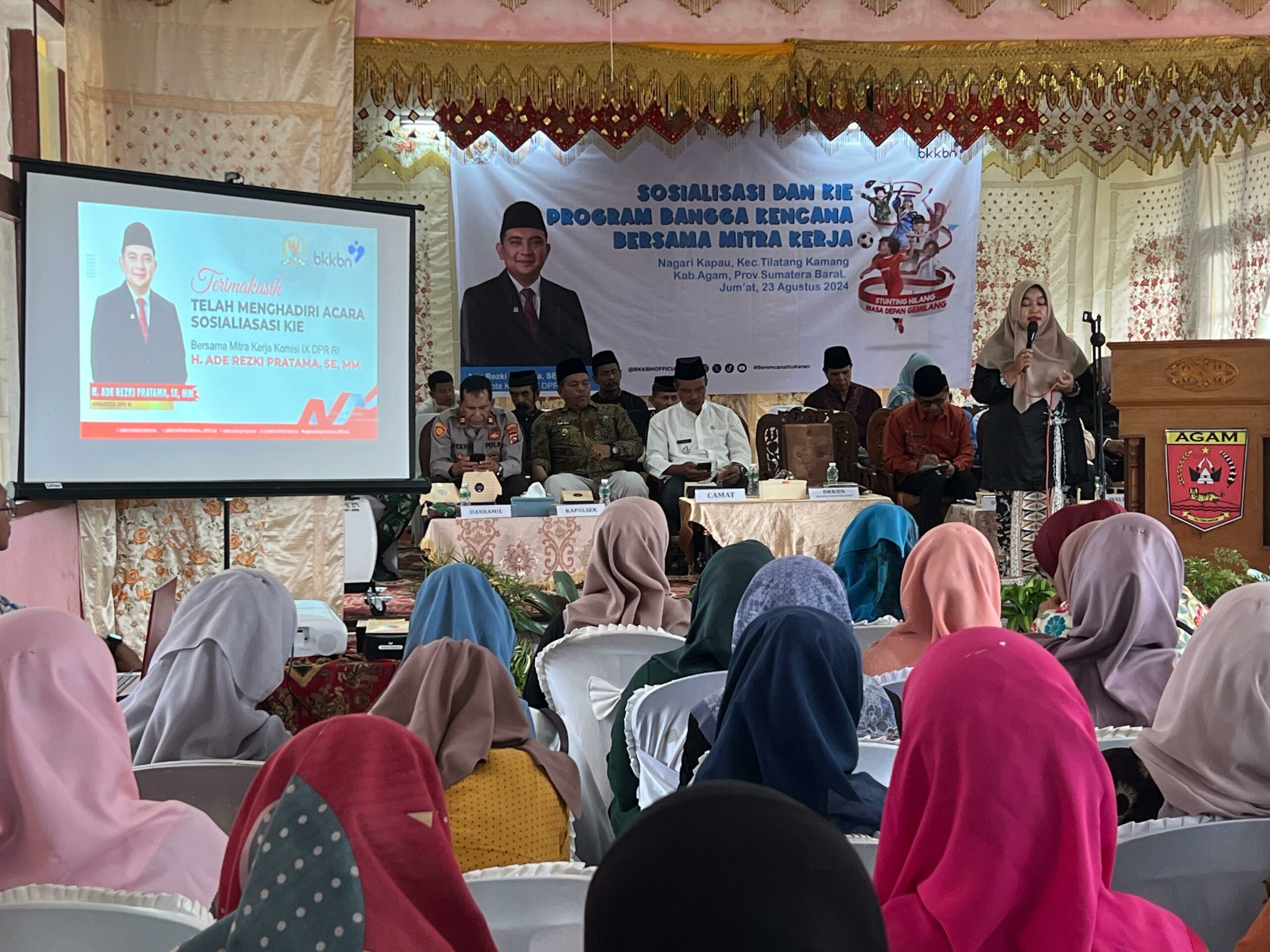 Infosumbar.net – BKKBN Sumbar bersama Anggota Komisi IX DPR RI Ade Rezki Pratama kembali menggelar Sosialisasi dan KIE Program Bangga Kencana bersama mitra kerja di Nagari Kapau, Kecamatan Tilatang Kamang, Kabupaten Agam, Jumat (23/8/2024).