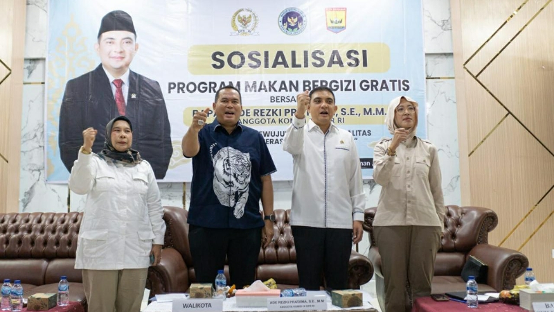 Acara sosialisasi program MBG dihadiri oleh anggota Komisi IX DPR RI Ade Rezki Pratama, Tenaga Ahli Deputi Bidang Promosi dan Kerjasama Badan Gizi Nasional (BGN) Anyelir Puspa Kemala, dan tokoh masyarakat setempat.