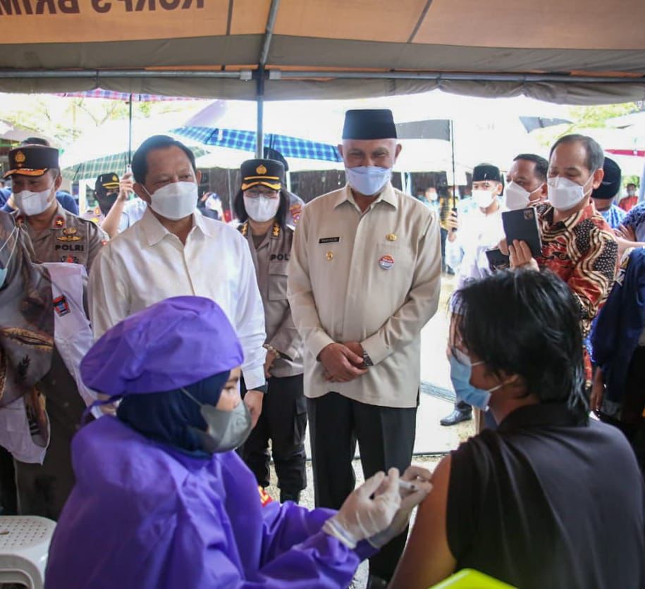 Menteri Dalam Negeri RI Tito Karnavian saat melaksanakan kunjungan kerja ke Padang, Jumat mengatakan capaian minimal 70 persen, lansia 60 persen hingga bisa melaksanakan vaksinasi bagi anak usia 6-11 tahun di daerah.