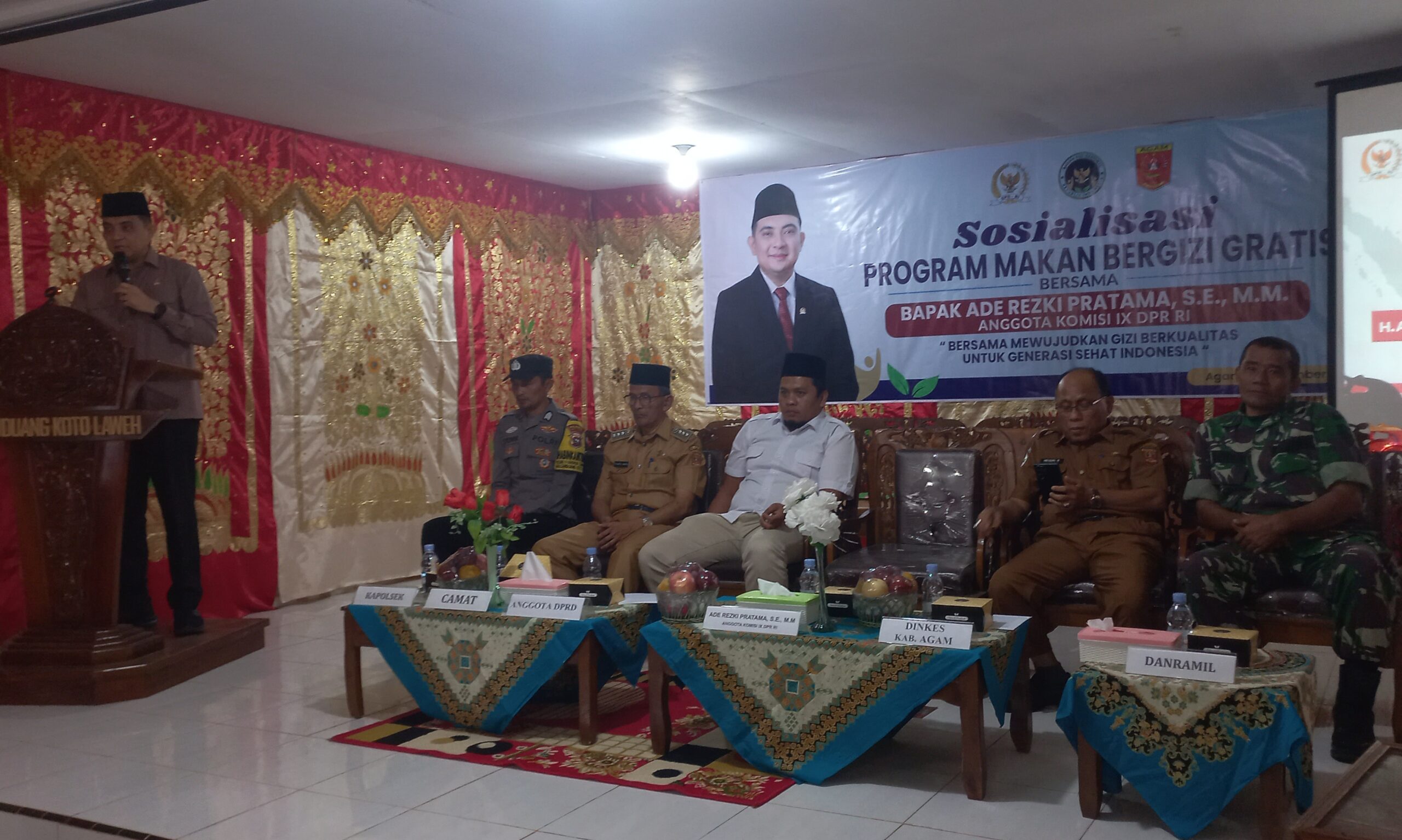 Infosumbar.net – Anggota Komisi IX DPR RI Ade Rezki Pratama kembali mensosialisasikan program Makan Bergizi Gratis (MBG) di Nagari Canduang Koto Laweh, Kecamatan Canduang, Kabupaten Agam, Selasa (11/11/2025).