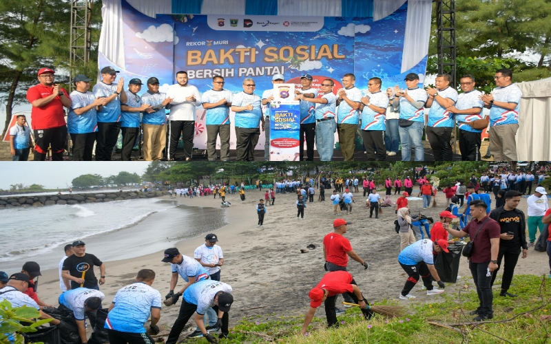 infosumbar.net – Pagi cerah di Pantai Purus, Kota Padang, menjadi saksi semangat kebersamaan ribuan orang yang turun langsung membersihkan pesisir pantai. Aksi bertajuk Bakti Sosial Bersih Pantai yang diikuti ribuan anggota Polda Sumbar beserta keluarganya ini berhasil mencatatkan Rekor MURI sebagai kegiatan bersih pantai dengan jumlah peserta anggota kepolisian dan keluarga terbanyak di Indonesia.