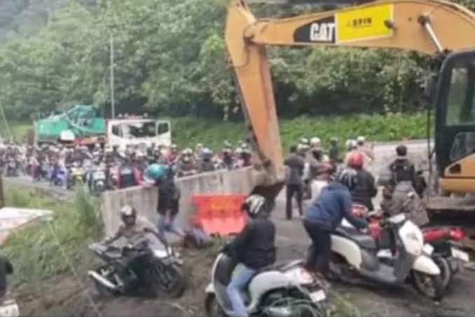 Sebelumnya, masih terdapat pengendara motor yang melintas di ruas jalan Lembah Anai meskipun jalan tersebut sedang dalam perbaikan. (peb)