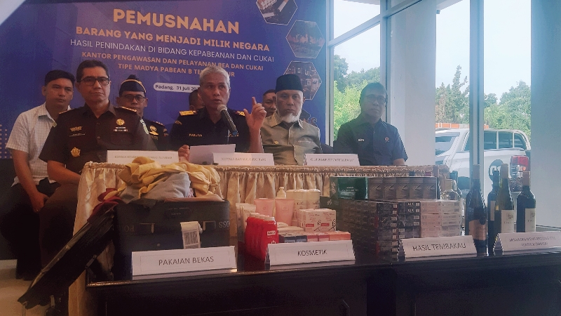 Press Rilis Pemusnahan Barang yang Menjadi Milik Negara di Wisma Indarung PT Semen Padang, Kamis (31/7/2025)