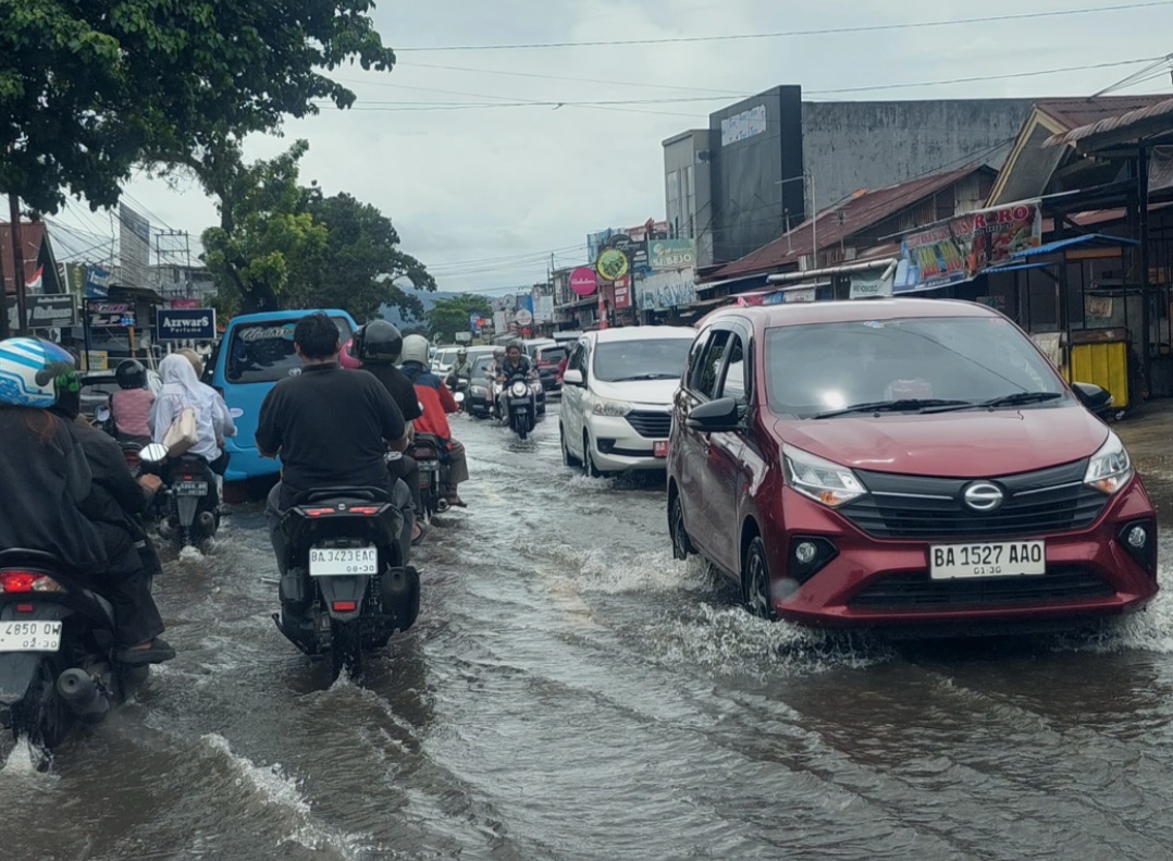 Infosumbar.net – Hujan yang mengguyur Kota Padang sejak Minggu (23/11) hingga Senin siang menyebabkan sejumlah ruas jalan di kawasan Pasar Raya–Siteba tergenang air. Kondisi ini membuat arus lalu lintas di beberapa titik menjadi tersendat.