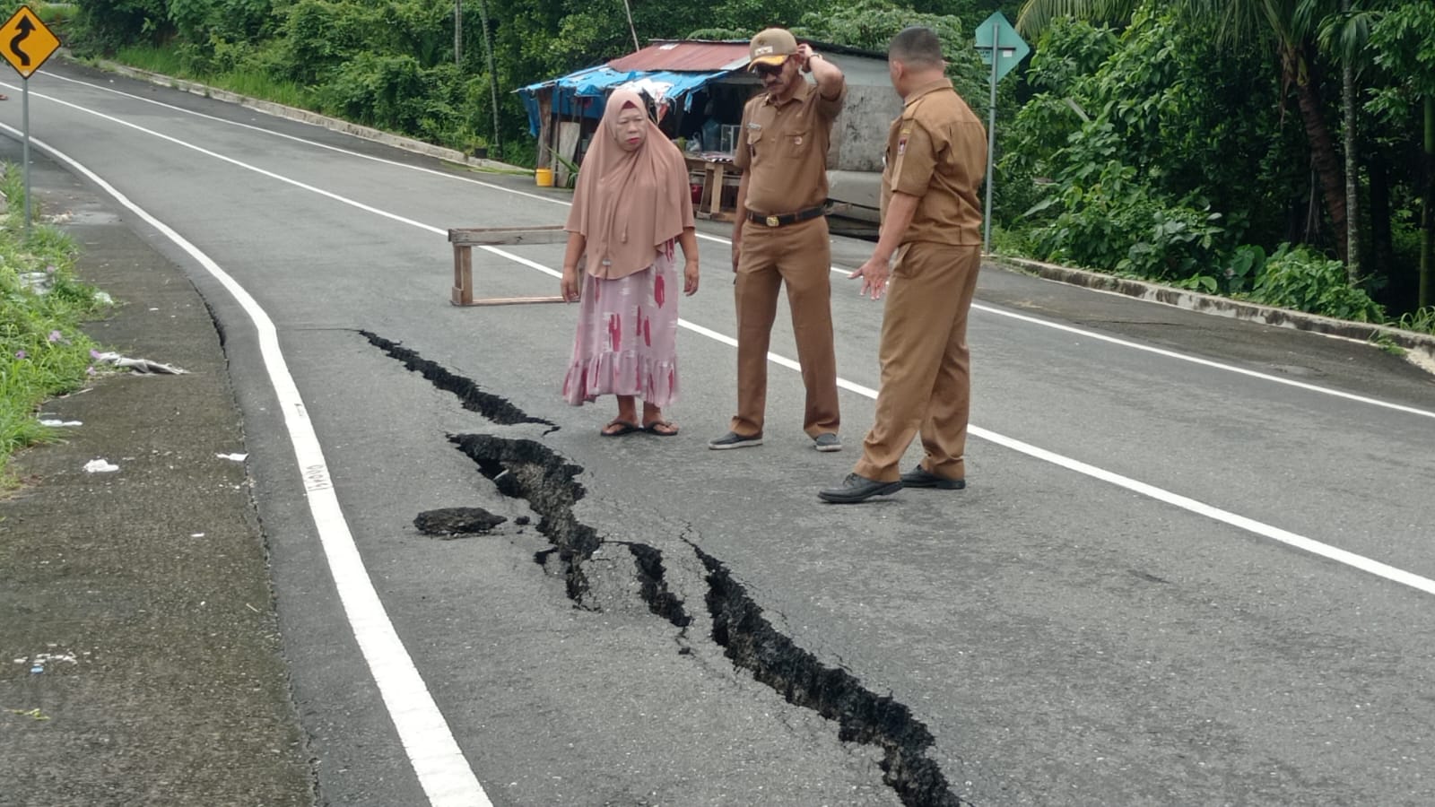Akibat kondisi itu, sebagian badan jalan mengalami pergeseran sehingga menimbulkan retakan yang cukup panjang. Petugas langsung dikerahkan ke lokasi untuk melakukan pengecekan.