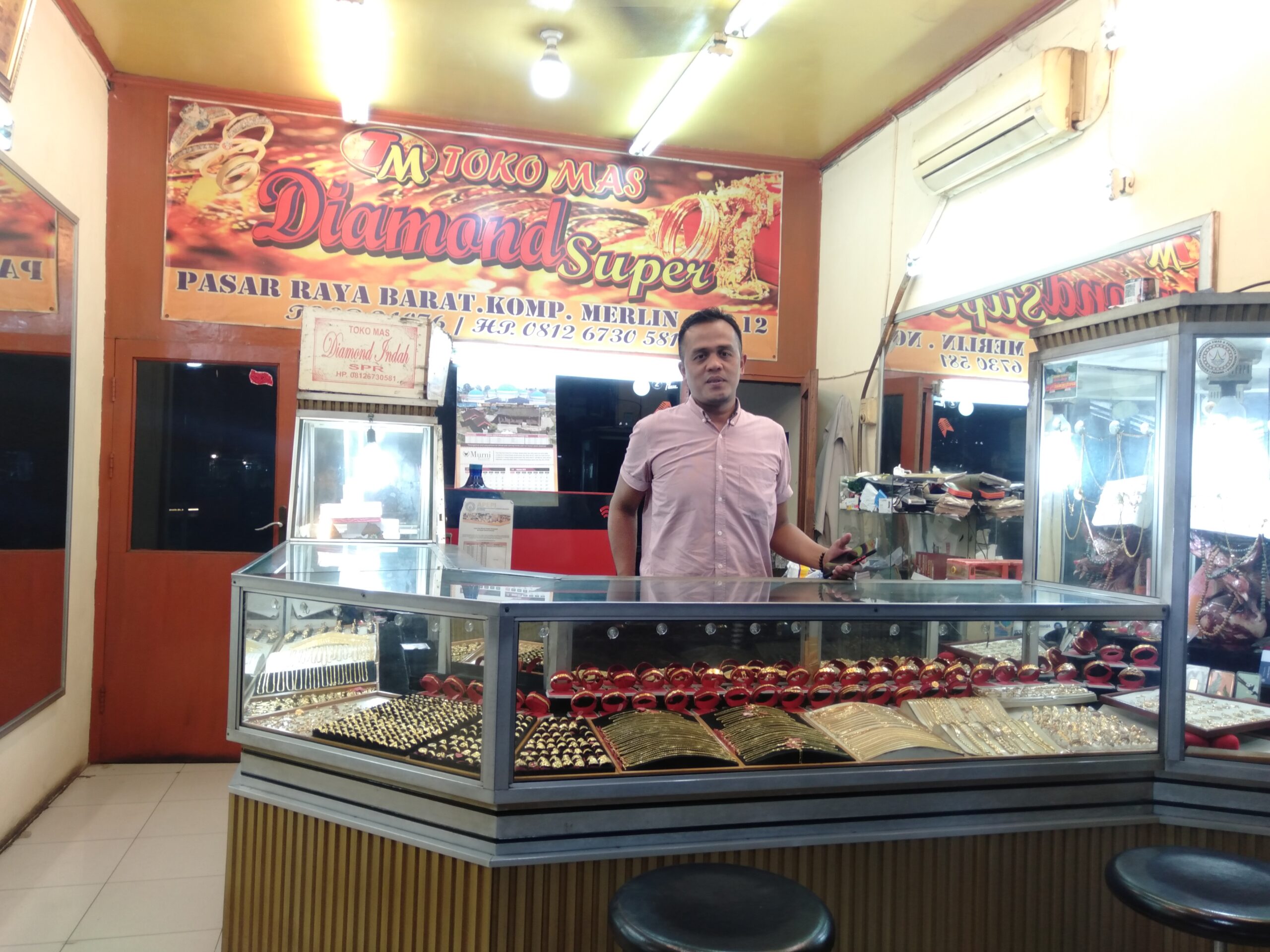 Pedagang toko emas Diamon Super Pasar Raya Kota Padang, Sumatera Barat