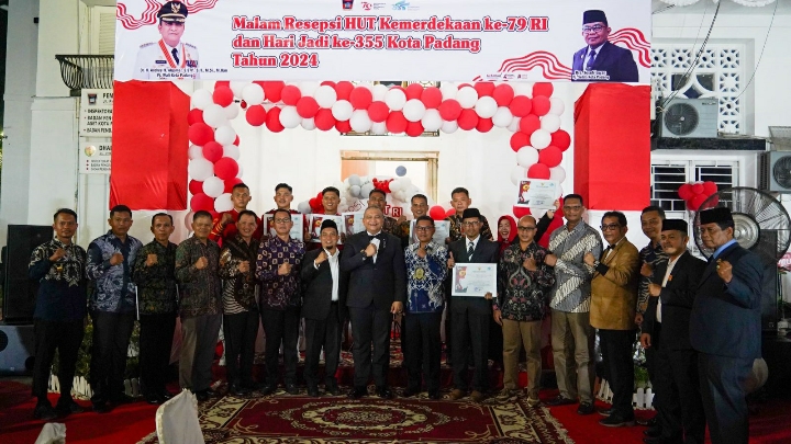 infosumbar.net – Rangkaian kegiatan peringatan HUT ke-79 RI dan Hari Jadi Kota Padang (HJK) ke-355 ditutup dengan gelaran malam resepsi HUT Kemerdekaan. Malam resepsi ini digelar di pelataran Balai Kota Padang lama di jalan M Yamin nomor 70, Sabtu (17/8/2024).