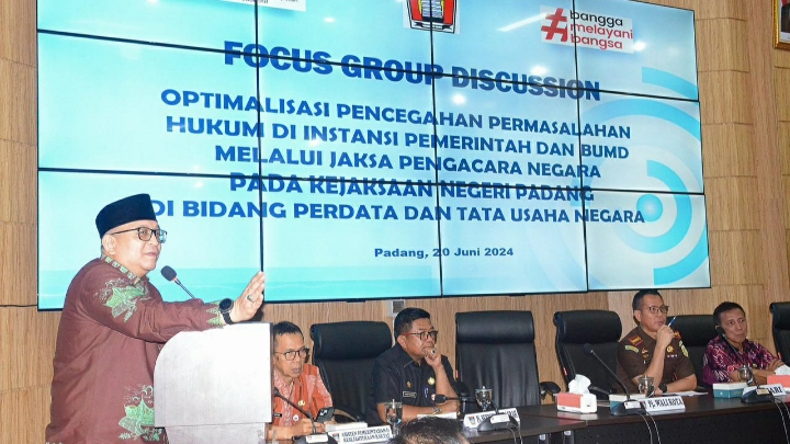 Tema yang diusung dalam FGD tersebut adalah “Optimalisasi Pencegahan Permasalahan Hukum di Instansi Pemerintah dan BUMD melalui Jaksa Pengacara Negara pada Kejari Padang di Bidang Perdata dan Tata Usaha Negara”.
