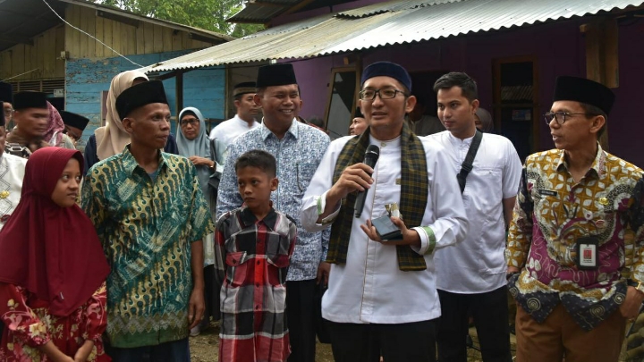 Wali Kota Hendri Septa mengakhiri program semata Ramadhan 1445 H dengan menyambangi rumah yang dihuni Syahrial bersama 2 anak di Padang Besi