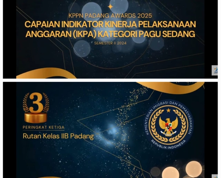 infosumbar.net – Rumah Tahanan Negara (Rutan) Kelas IIB Padang berhasil meraih prestasi membanggakan dengan menempati posisi ketiga dalam ajang KPPN Padang Awards 2025 untuk kategori pagu sedang.