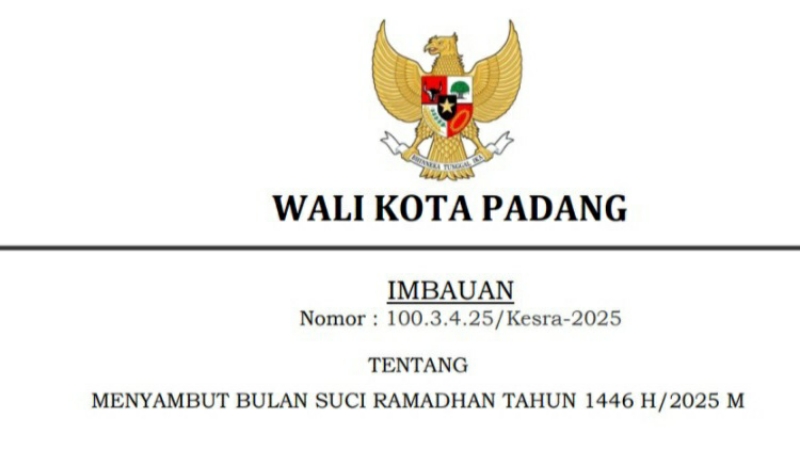 infosumbar.net – Pemerintah Kota Padang melalui Wali Kota Padang, Fadly Amran, mengeluarkan imbauan kepada seluruh warga Kota Padang dalam rangka menyambut Bulan Suci Ramadhan Tahun 1446 H/2025 M.