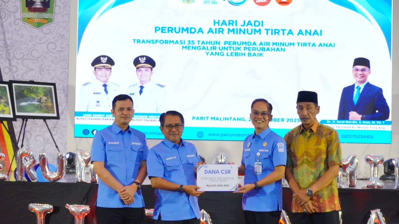 infosumbar.net – Perusahaan Umum Daerah (Perumda) Air Minum Tirta Anai merayakan hari jadinya yang ke-35 dengan harapan besar dari Pemerintah Daerah. Bupati Padang Pariaman, John Kenedy Azis, menyampaikan ucapan selamat sekaligus menagih komitmen peningkatan layanan air bersih yang lebih berkualitas dan merata bagi masyarakat.