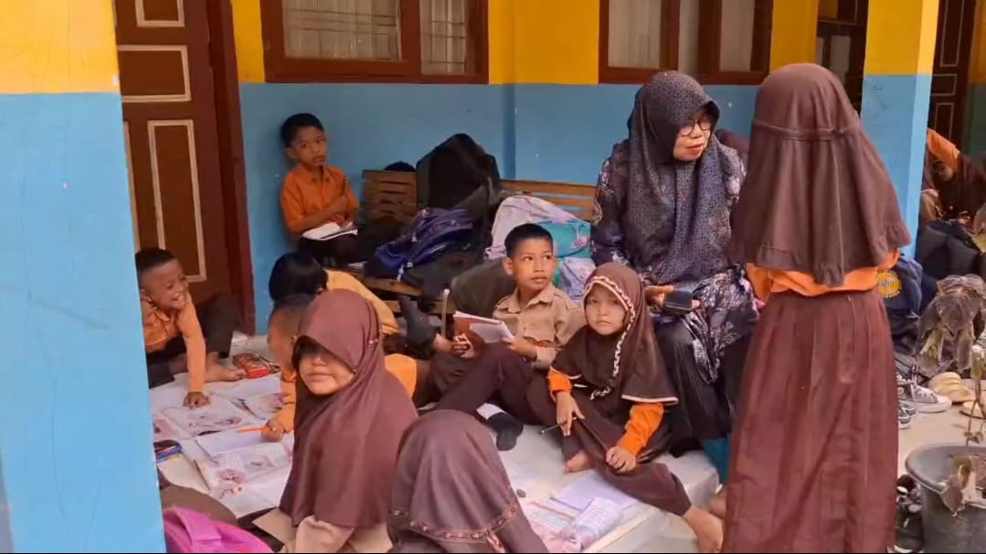infosumbar.net – Ratusan siswa Sekolah Dasar Negeri (SDN) 05 Sungai Limau, Kabupaten Padang Pariaman, Sumatera Barat, terpaksa harus belajar di lantai teras sekolah.