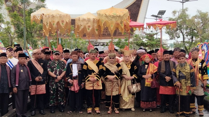Prosesi adat digelar di Komplek Masjid Raya Syekh Ahmad Khatib Al-Minangkabawi, Kota Padang, Sabtu (22/11/2025).