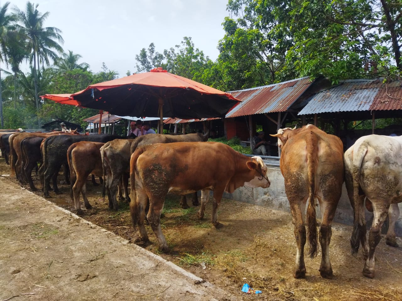 “Satu bulan menjelang hari raya Idul Adha, biasanya sudah banyak sapi yang laku terjual. Sekarang sudah tiga kali Senin, baru satu ekor sapi yang terjual di pasar ini. Dan empat ekor lagi terjual di rumah, total baru ada lima. Ini dari pagi sampai siang ini saja belum ada yang terjual,” tambahnya.