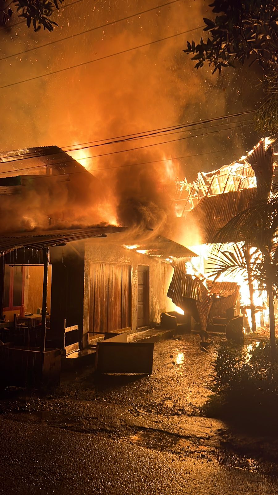 “Akhirnya menyebar ke bagian kuda kuda rumah, dan turut membakar ke dalam ruangan rumah,” katanya.