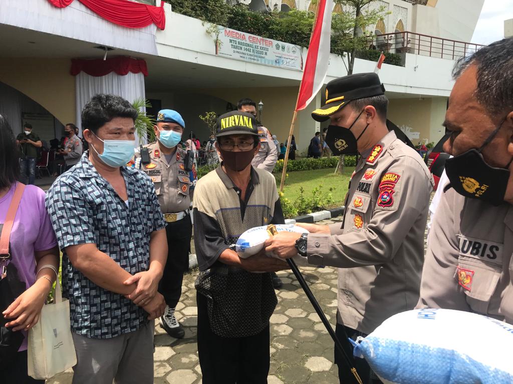 Kapolresta Padang Imran Amir menjelaskan kalau disamping vaksinasi pihaknya memberikan bantuan berupa satu karung beras 10 kilogram kepada masyarakat.